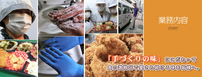 お弁当を電話、FAXで受注し、配達エリア内の職場まで指定された場所、時間に合わせて、おいしいお弁当をお客様のもとへお届けにあがるシステムです。